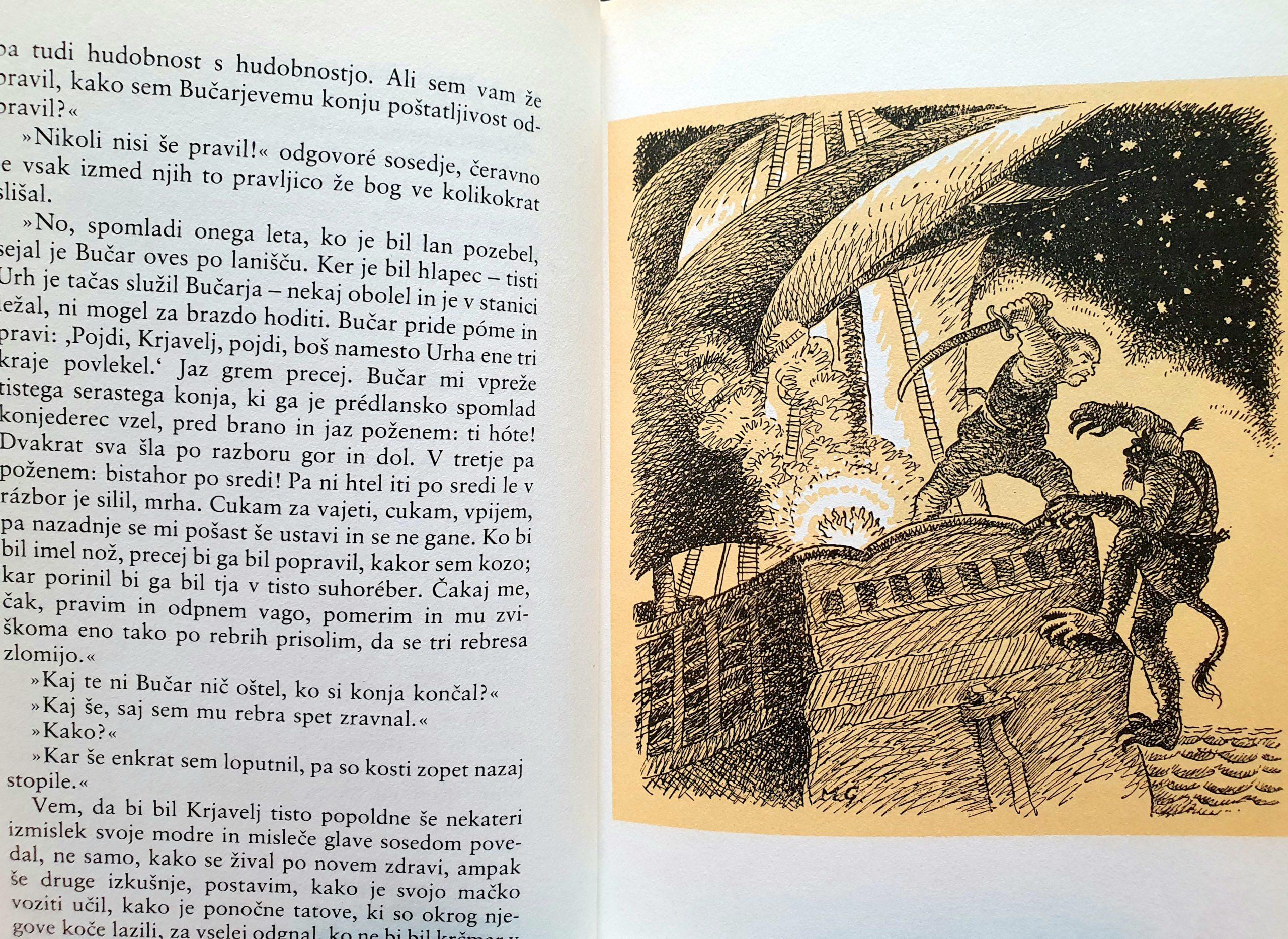 We had privilege to went through the book edition, which was illustrated by Maksim Gaspari (Mladinska Knjiga, Ljubljana), dated from early 1979. In greater detail we looked at the meaning and roles of two important characters in the novel: the tragic character Martinek Spak – the Tenth Brother and Krjavlj, the indestructible bold joker who leaves a mark in the readers’ memory. This particular character over the years became the adjective ‘’krjaveljski’’ (a krjavel) and even into the name of an industrial product, a type of high-quality bread “Krjavljev kruh”.