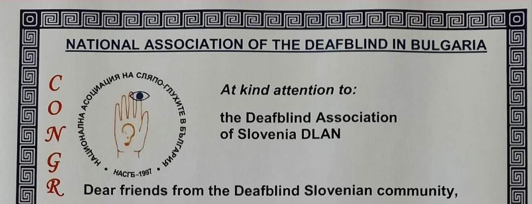 Objavljamo čestitko Nacionalnega društva gluhoslepih iz Bolgarije (National Association of the Deafblind in Bulgaria) ob Evropskem dnevu gluhoslepih in 18-letnici delovanja Združenja DLAN.